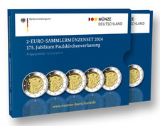 Tirage: 23.000 | contient les 2 Euros Commémoratives *175e anniversaire de la Constitution de l'Église Saint-Paul 2024* avec les 5 ateliers monétaires A-D-F-G-J complète BE (Proof-Like)