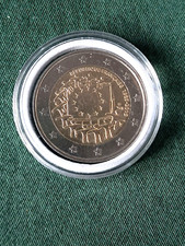 Tirage: 1.000 | contient 4 x 2 euro commémoratives - 30 ans du drapeau européen 2015 - BE. 3 pièces sont colorisées différemment. En coffret original avec certificat.