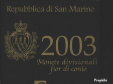 Tirage: 70.000 | contient la série Euro complète 1 Cent à 2 Euro de Saint-Marin 2003 de même que la 5 Euro argent 1700 years Republic de Saint-Marin (seulement dans cette série) (Argent 925/1000, Poids: 18,00 g, Diamètre: 32,00 mm)